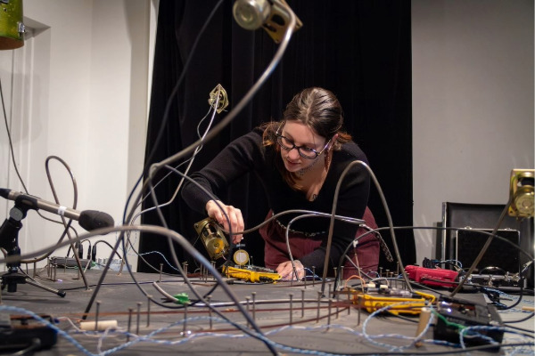A multidisciplinary artist based in Quebec City, originally from Drummondville. Her work lies at the intersection of sound, drawing, and installation, exploring how memory, material, and space interact through immersive and sensitive devices, where fragility, traces, and wear become material for creation.