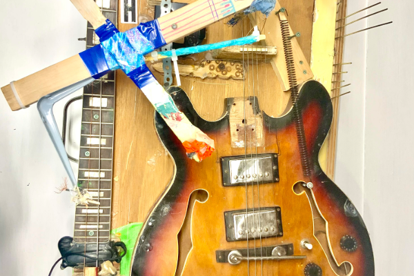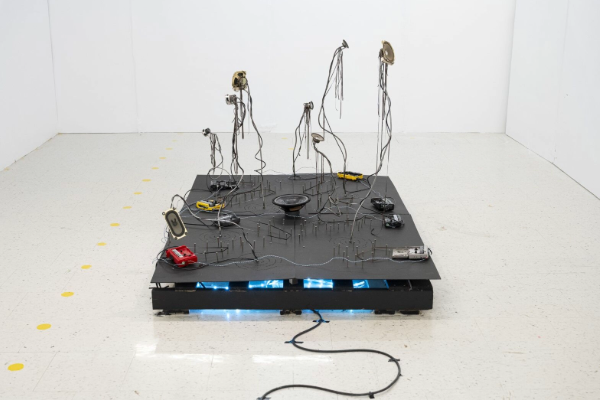 Ghislain Roy Ghislain RoyDe tout cela, résultait un fin poudroiement doré alimenté de l’intérieur d’une bizarre lumière Quebec | World Premierefree admission5- Vélogare A performative installation unified with studio work, devising a creative laboratory, bringing together an arsenal of electronic objects and some thirty sculptural instruments, including several yet-to-be seen. Collective activation by invitation of Ghislain Roy: De tout cela, résultait un fin poudroiement doré alimenté de l’intérieur d’une bizarre lumière